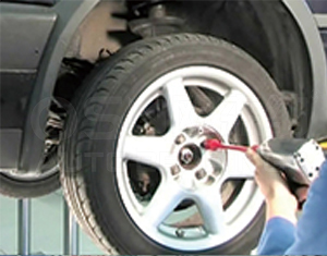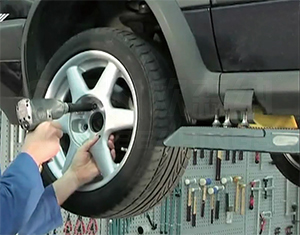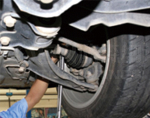 Drive the vehicle onto the lift and remove the front wheels.
