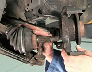 Use special tool to remove nut under tie – rod ball head. Then use pliers to separate knuckle from tie – rod.