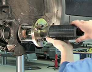 Using a special tool, remove the flange to separate it from the ball cage.